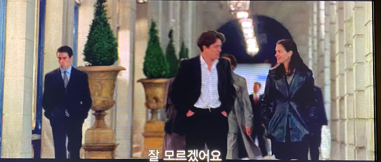 노팅힐은 가장 마지막 장면, 애나가 태커의 마음을 확인하고 세상에 두 번 다신 없을 것 같은 미소를 지으며 나지막이 내뱉는 'Indefinitely' 와 그때 흐르는 음악 'She'를 보고 듣기 위해 2시간을 기다린다 해도 과언이 아닐 정도로, 나는 그 장면을 좋아했다. 아니 모두가 그럴 거라 생각한다. 하지만 이번엔 이전에 보고 듣지 못했던 몇 가지 장면과 대사들이 마음에 와닿았다.