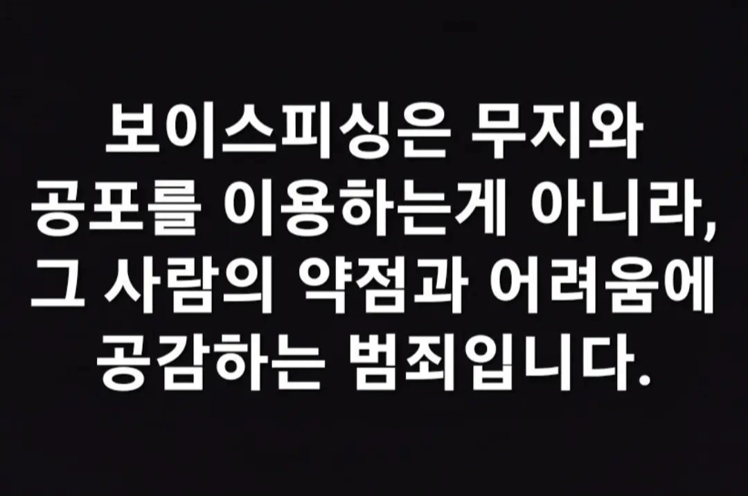 보이스피싱은 사람의 무지와 공포를 이용하는 게 아니라, 그 사람의 약점과 어려움에 공감하는 지능범죄입니다. 그래서 법조인과 고지식층도 피해를 당하고 있습니다. 피해를 보신 분은 절대 자신을 자책하지 않으셔도 됩니다.