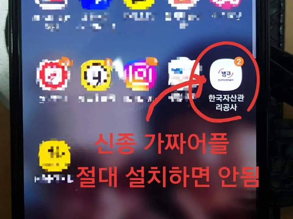 이러한 출처 불명의 가짜 어플을 절대로 휴대폰에 설치하시면 안 됩니다. 각별한 주의가 필요합니다.