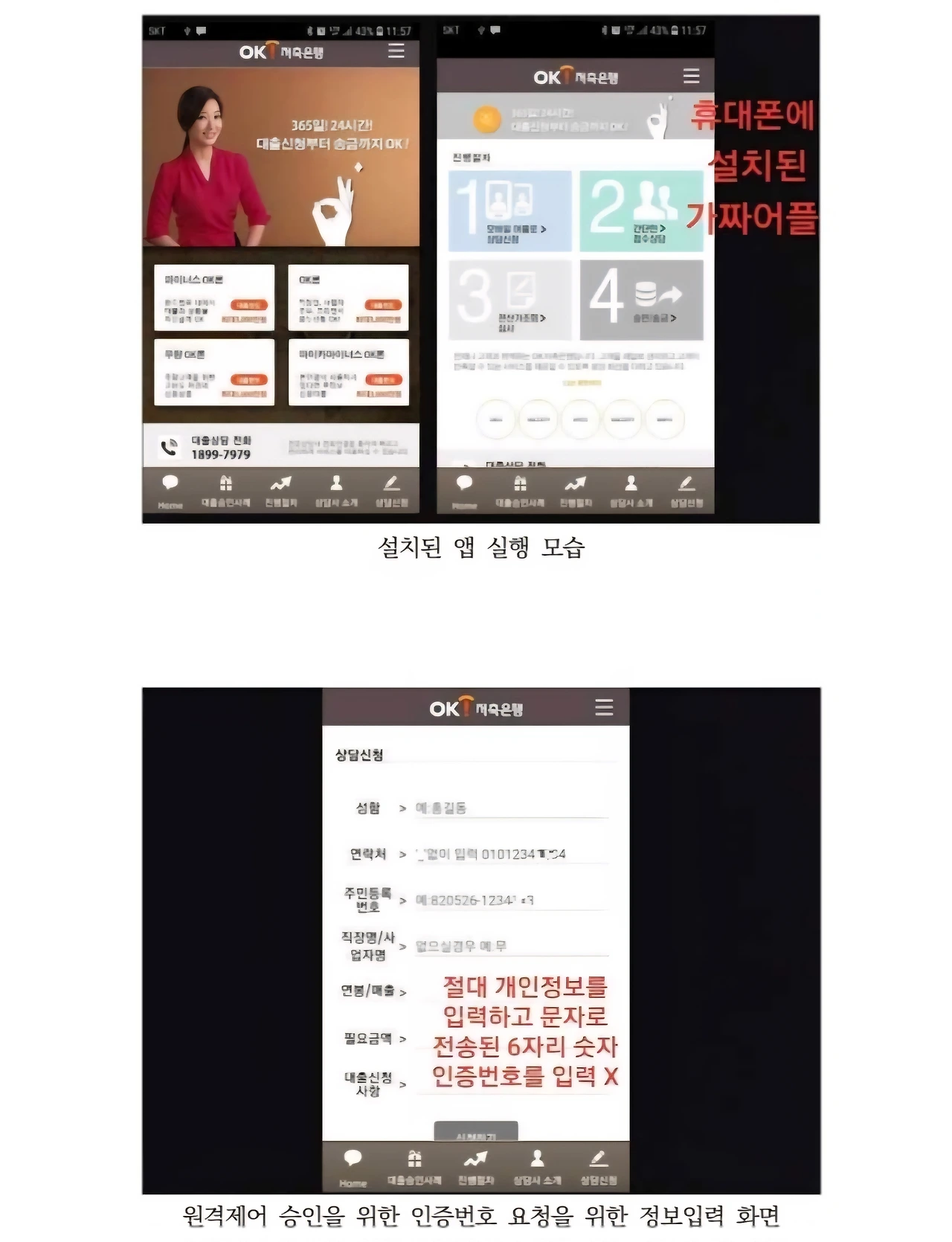 이 악성 앱을 이용한 보이스피싱은 아직 홍보가 많이 되지 않아, 이 수법을 모르는 국민들이 대부분이라, 연일 피해가 발생하고 있습니다.