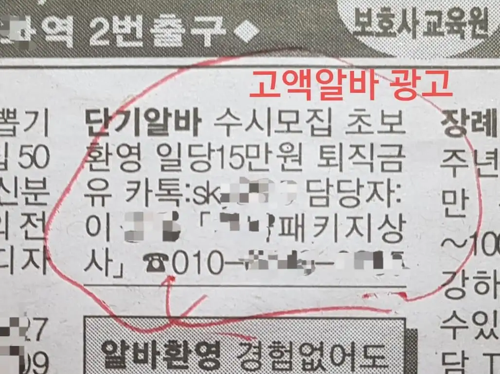 보이스피싱 조직이 구인구직 종이 신문에 낸 광고