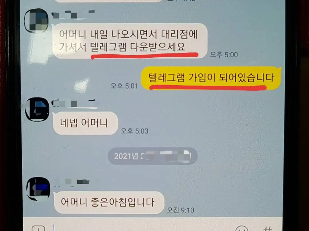 평소 사용하던 카카오톡도 아닌 '텔레그램'이란 메신저로 '어디로 가서 누구를 만나서 돈을 받고, 받은 돈을 지정해주는 계좌에 무통장으로 100만원씩 입금하세요'라는 지시를 받게 되고 그의 지시에 따라 움직이게 됩니다.