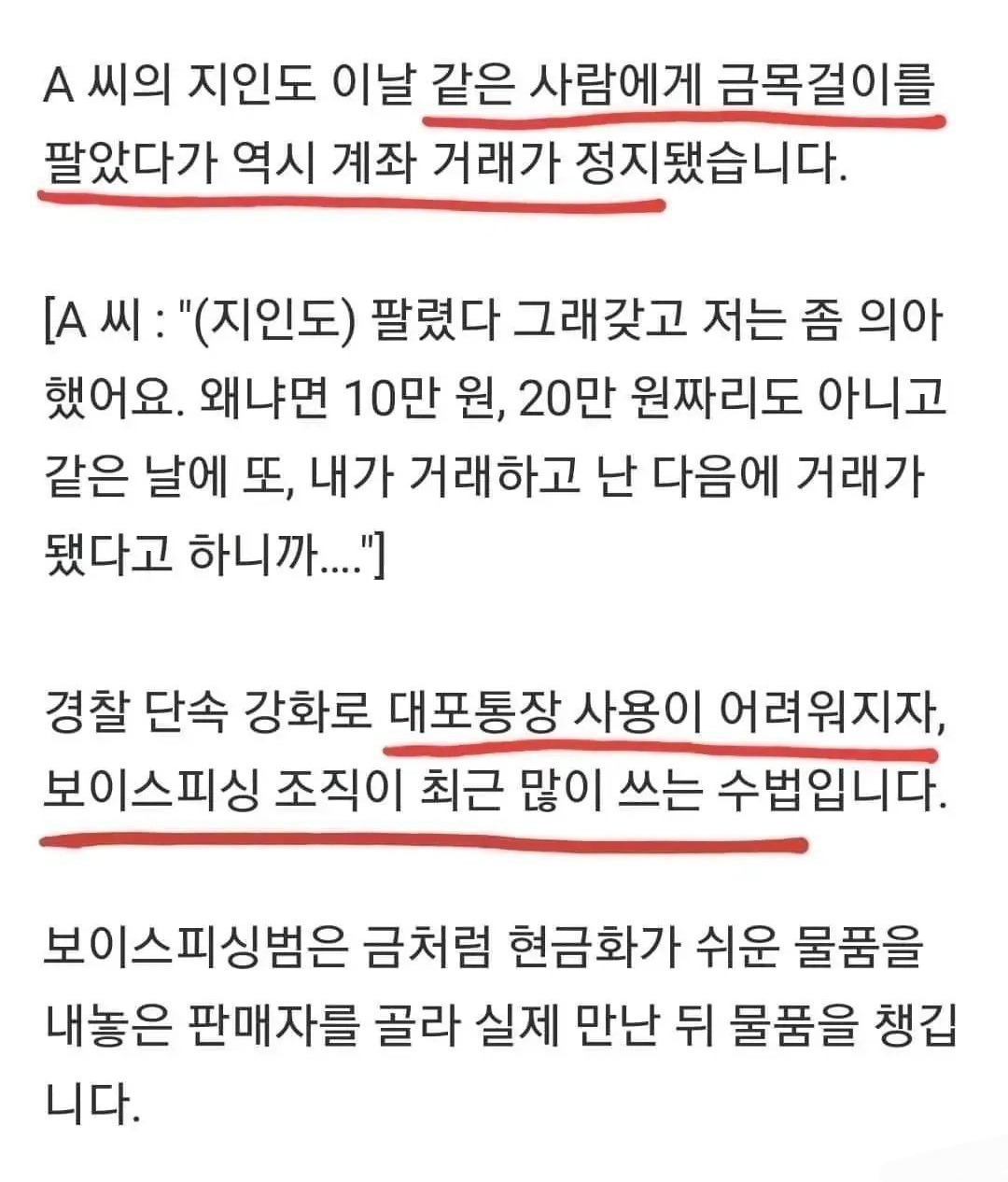 그런 다음, 시계나 골드바 등 고가의 물건을 파는 2차 피해자의 계좌로... 1차 피해자가 돈을 송금하게 하고, 수거책을 보내 물건만 받아 챙겨 달아납니다.