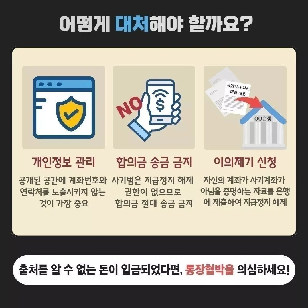 통장 협박도 보이스피싱의 한 종류로 수법을 알면 예방하고 대처할 수 있습니다.