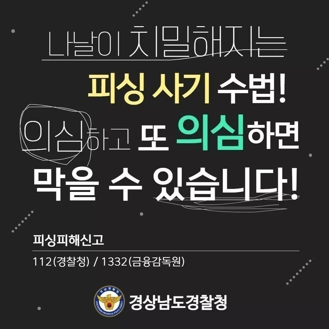 #국민 #경찰 #소통 #강력계 #강력팀 #피싱팀 #형사 #보이스피싱 #메신저피싱 #몸캠피싱 #스미싱 #피싱 #통장협박 #통장묶기 #사기 #예방