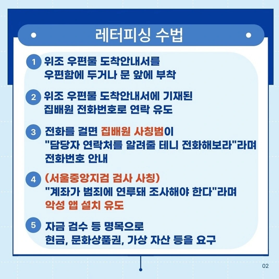 위조된 우편물 도착 안내서를 이용하여 사람들을 속이는 신종 보이스피싱 사기 수법