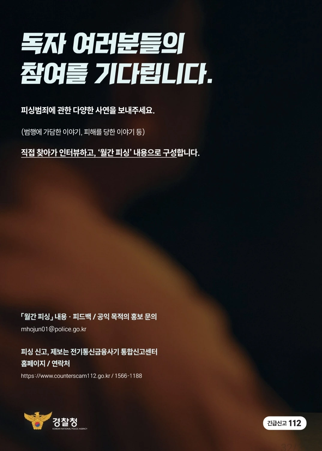#국민 #경찰 #소통 #강력계 #강력팀 #피싱팀 #형사 #보이스피싱 #메신저피싱 #몸캠피싱 #스미싱 #피싱 #사기 #예방