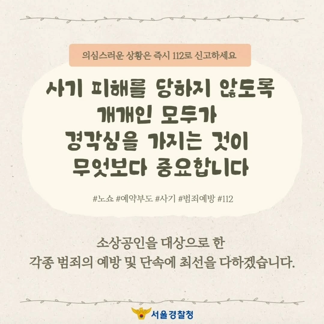 #국민 #경찰 #소통 #강력계 #강력팀 #피싱팀 #형사 #보이스피싱 #메신저피싱 #몸캠피싱 #스미싱 #피싱 #노쇼 #예약부도사기 #사기 #예방
