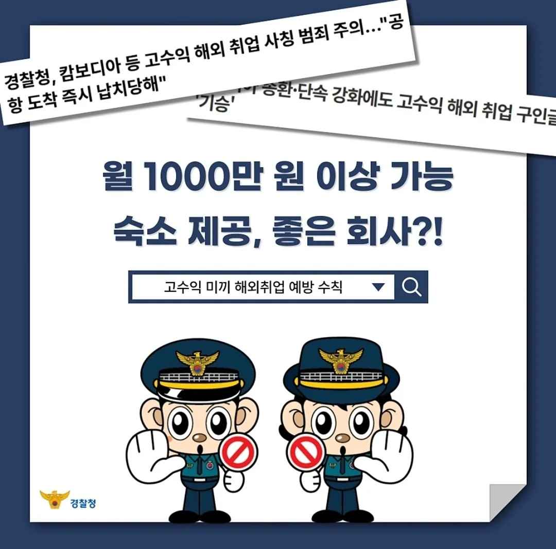 #국민 #경찰 #소통 #강력계 #강력팀 #피싱팀 #형사 #보이스피싱 #메신저피싱 #몸캠피싱 #스미싱 #피싱 #사기 #고수익알바 #고수익단기알바 #해외취업 #캄보디아 #고소득부업 #예방