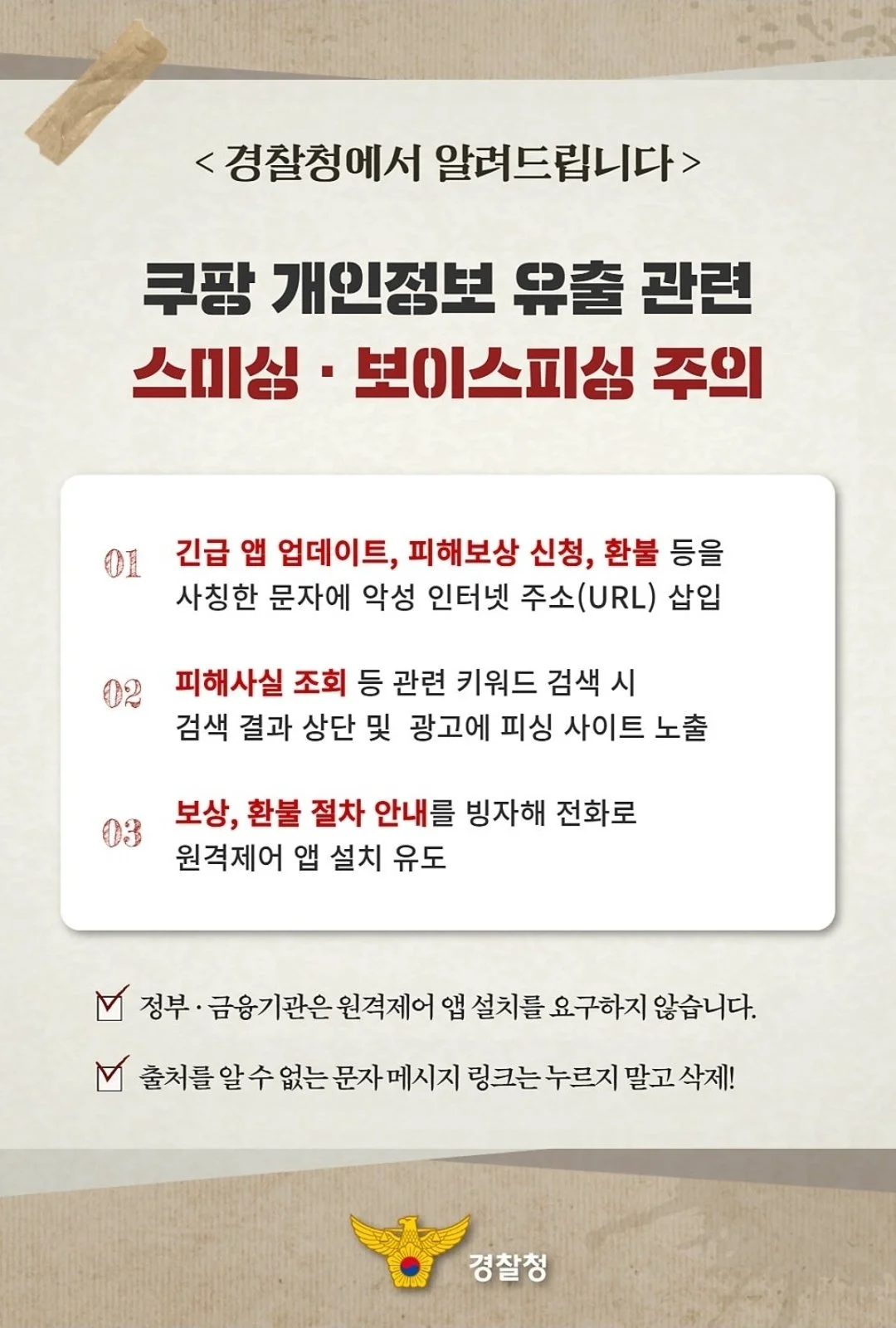 최근 쿠팡에서 대규모 개인정보 유출 사고가 발생하면서 이를 악용한 금융사기 범죄가 우려됩니다.
