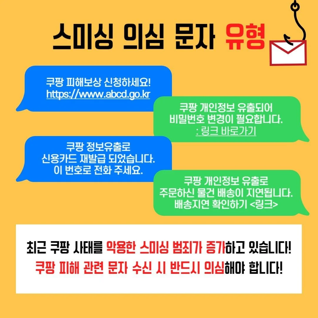 쿠팡 개인정보 유출 스미싱 문자, 절대 누르지 마세요!