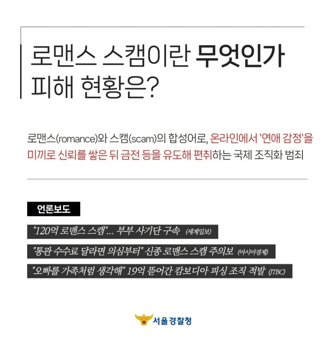 #국민 #경찰 #소통 #강력계 #강력팀 #피싱팀 #형사 #보이스피싱 #로맨스스캠 #해외거점스캠범죄 #메신저피싱 #몸캠피싱 #스미싱 #피싱 #사기 #예방