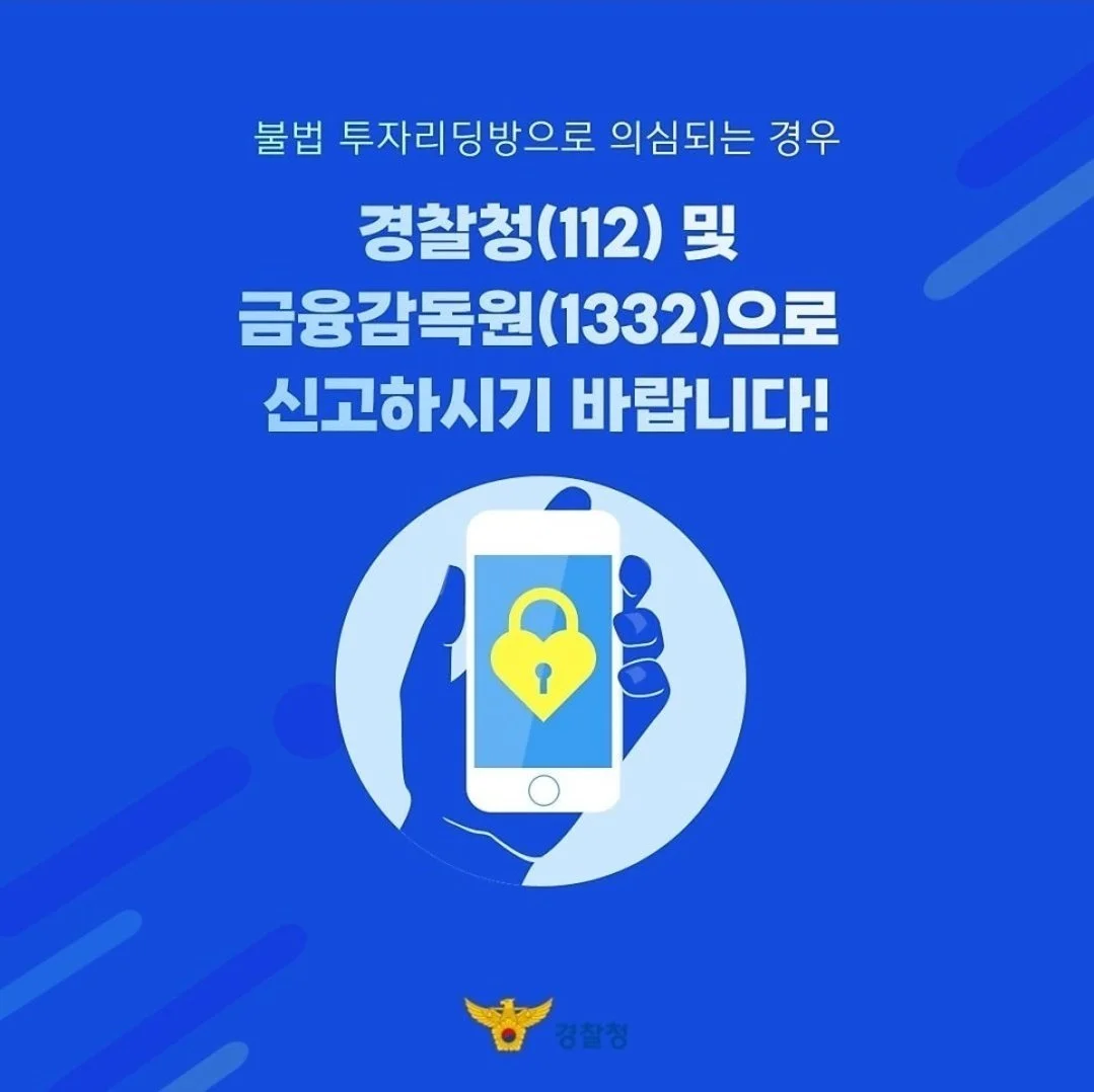 불법 투자리딩방으로 의심되는 경우 112신고나 금융감독원으로 신고바랍니다!!
