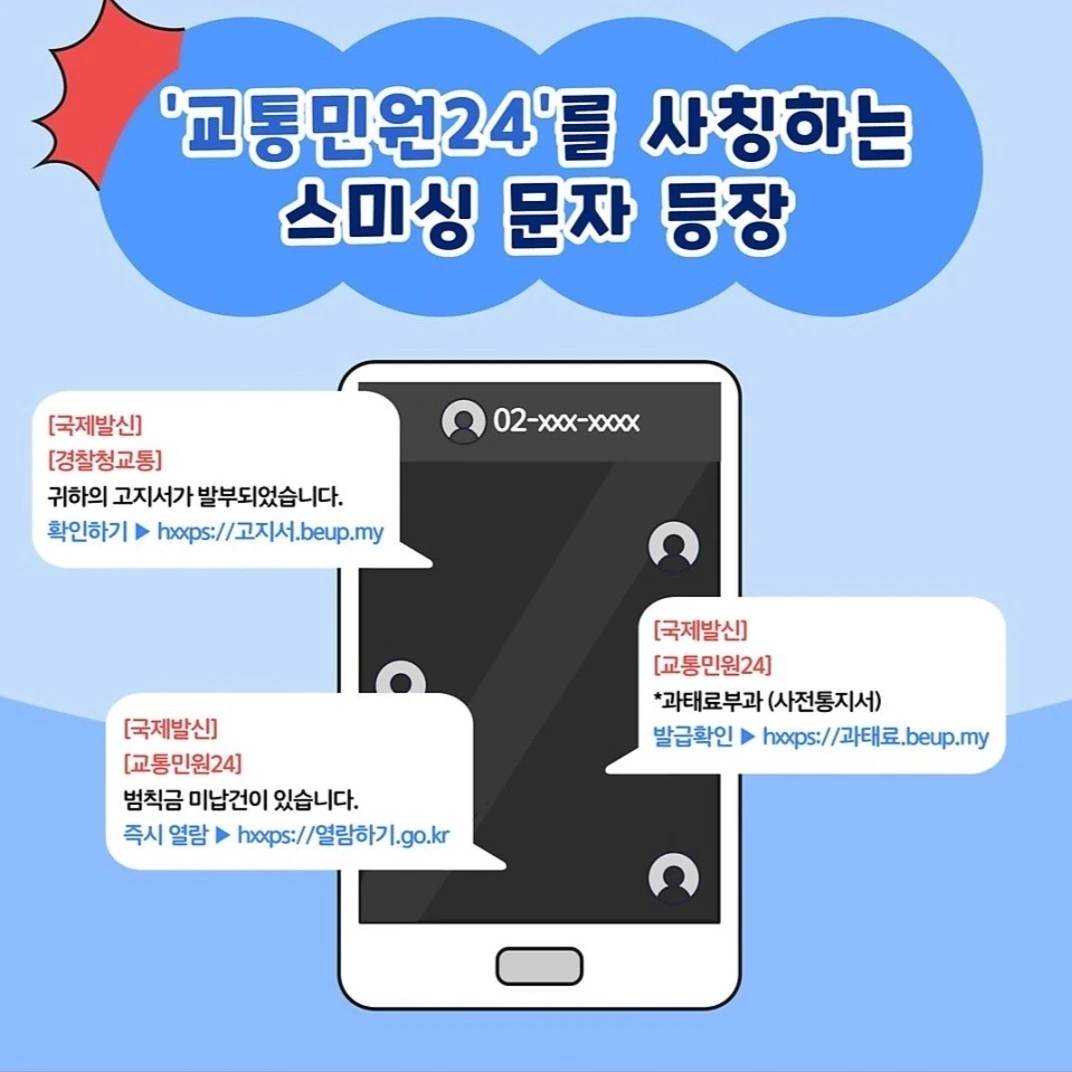 점점 정교해지는 악성 사기, 이제는 교통민원24 사이트를 사칭한 스미싱까지 등장!