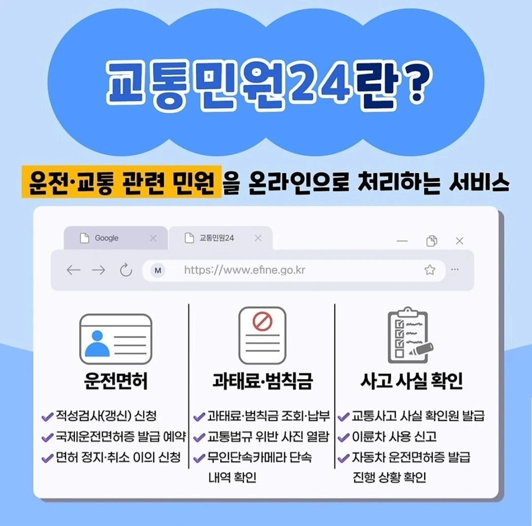 교통민원24(이파인) 검색해서, 해당 주소가 맞는지 꼭 확인하세요.