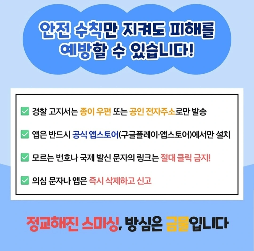 #국민 #경찰 #소통 #강력계 #강력팀 #피싱팀 #형사 #보이스피싱 #메신저피싱 #몸캠피싱 #스미싱 #피싱 #사기 #예방