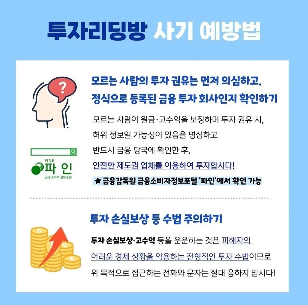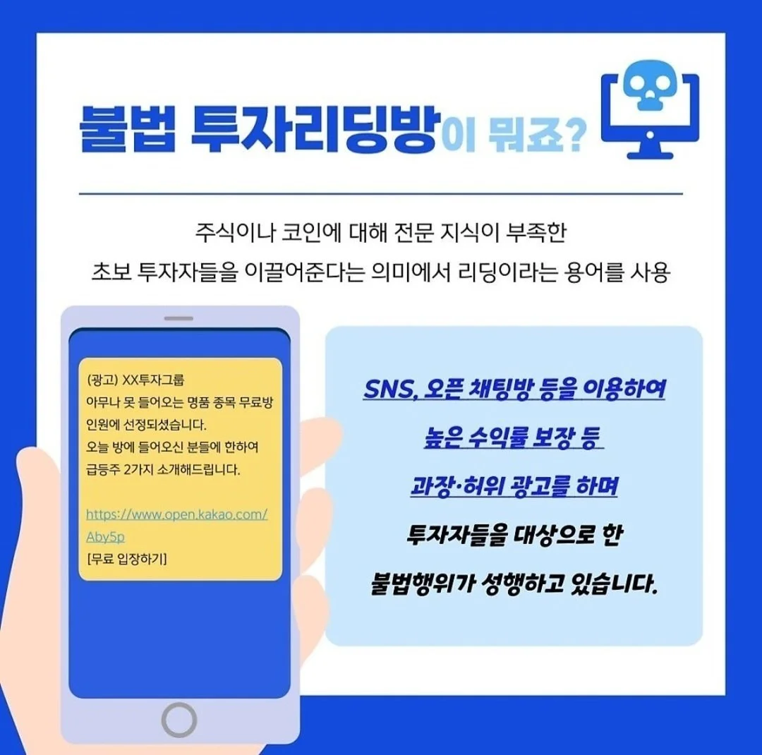 불법 투자리딩방으로 의심되는 경우 112신고나 금융감독원으로 신고바랍니다!!
