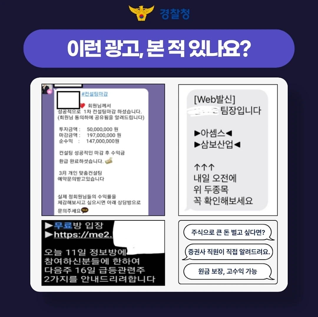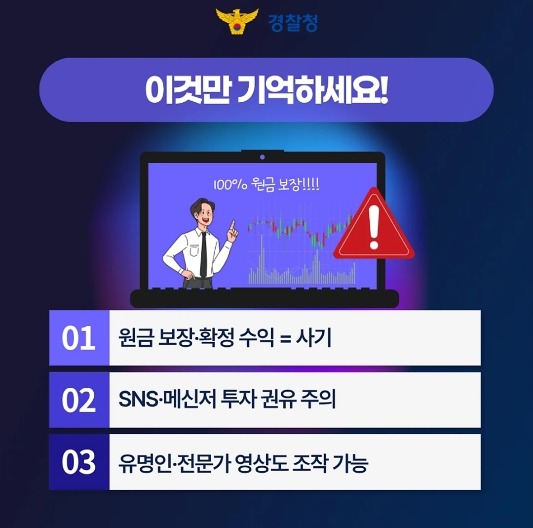 #국민 #경찰 #소통 #강력계 #강력팀 #피싱팀 #형사 #보이스피싱 #메신저피싱 #몸캠피싱 #스미싱 #사기 #예방 #AI #투자 #리딩방