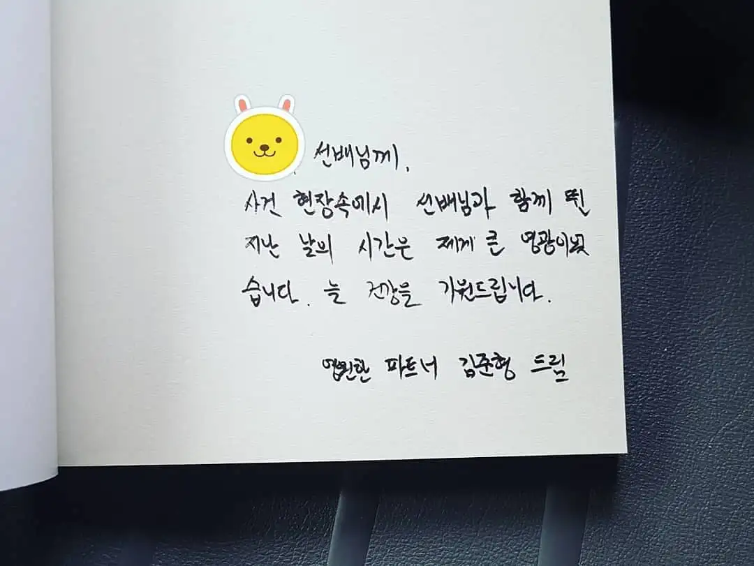 선배님과는 과거 5년 동안 전국 방방곡곡을 발로 뛰어다니며, 수많은 강력사건 현장에서 손발을 맞추었습니다.