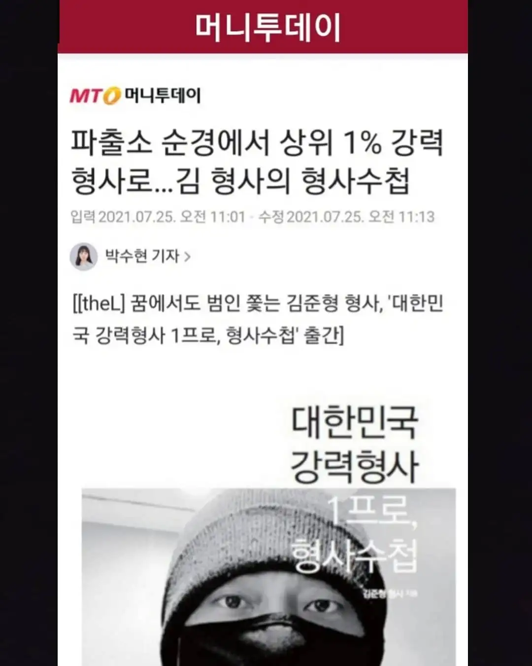 [[theL] 꿈에서도 범인 쫓는 김준형 형사, '대한민국 강력형사 1프로, 형사수첩' 출간] "처음 가졌던 목표는 대한민국 강력형사 1%에 들겠단 것이었습니다. 그 목표를 위해 아침부터 저녁까지 하루