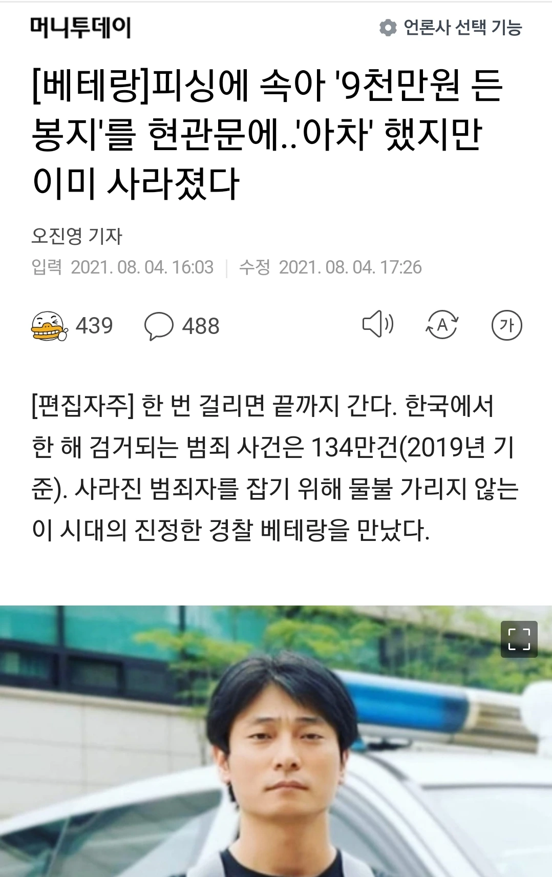 [편집자주] 한 번 걸리면 끝까지 간다. 한국에서 한 해 검거되는 범죄 사건은 134만건(2019년 기준). 사라진 범죄자를 잡기 위해 물불 가리지 않는 이 시대의 진정한 경찰 베테랑을 만났다. 지난해 3