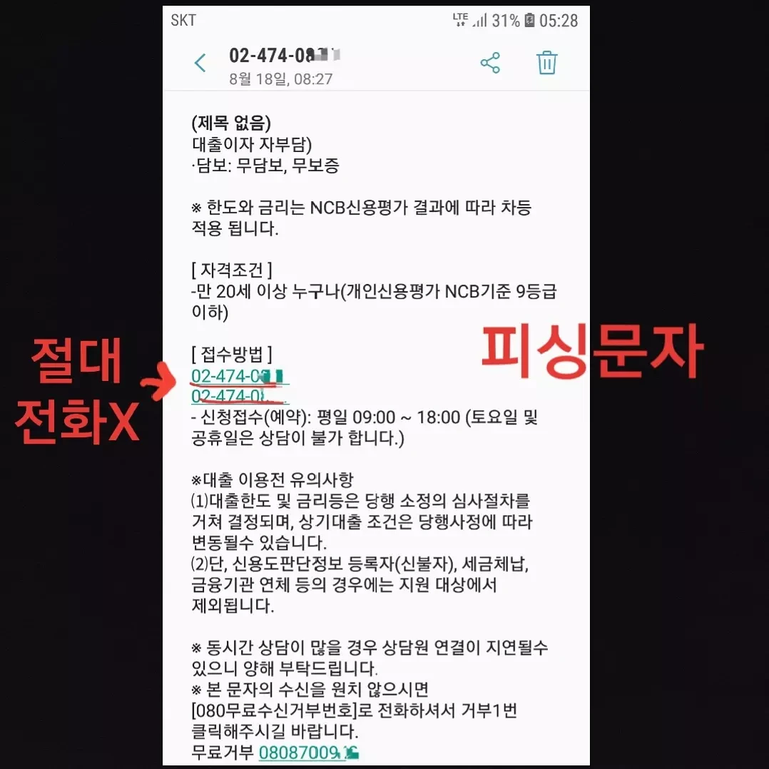 - 상대방이 문자나 카톡으로 보내 당신의 휴대폰에 설치하라는 어플을 절대 설치하시면 안 됩니다.