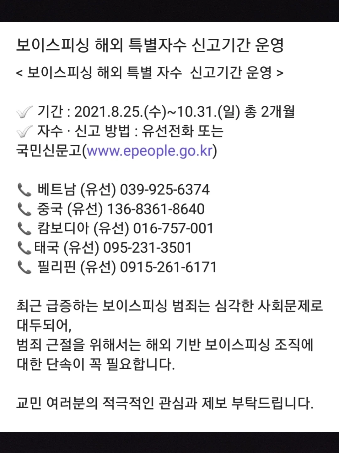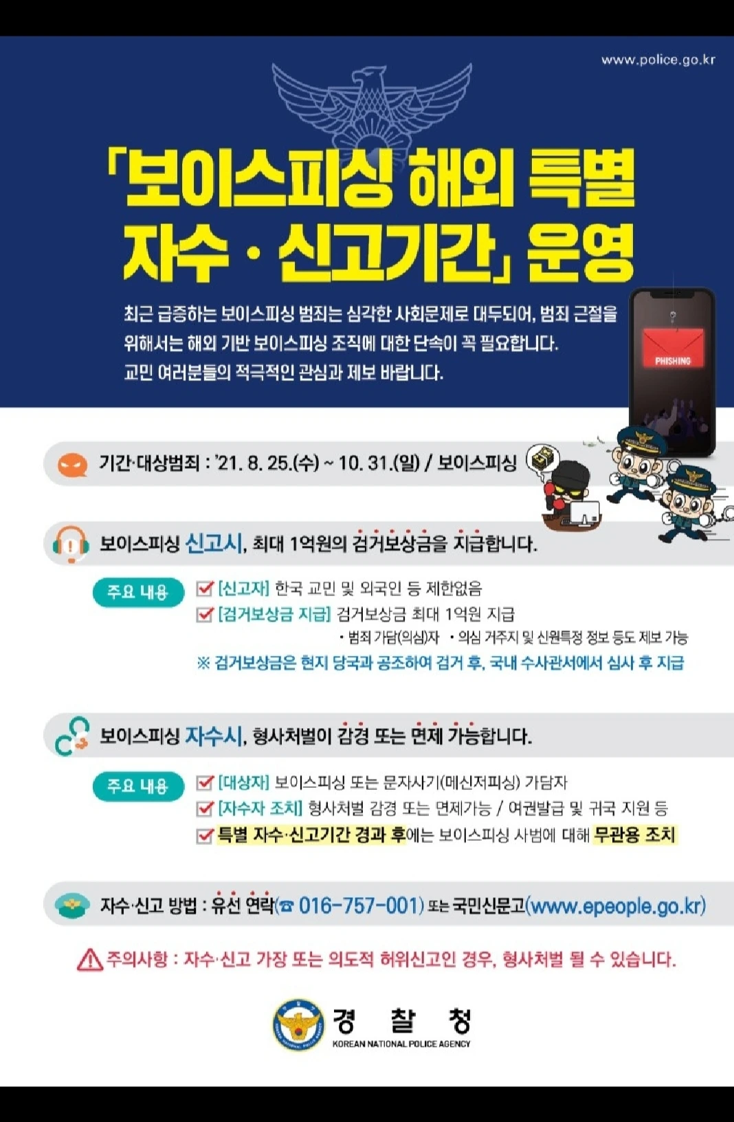 <보이스피싱 해외 특별자수ㆍ신고기간 운영>