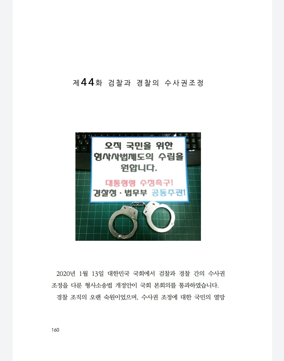 경찰 조직의 오랜 숙원이었으며, 수사권 조정에 대한 국민의 열망은 그 어느 때보다도 뜨거웠습니다.