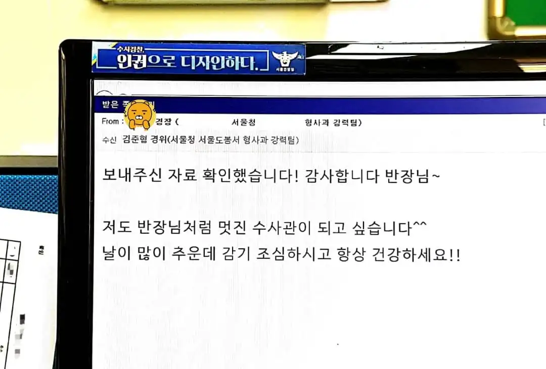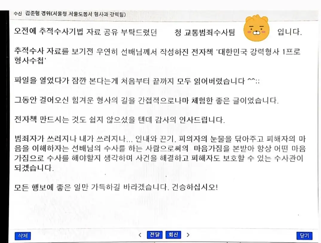 대한민국 최고의 형사ㆍ수사관을 꿈꾸시는 후배들에게 쪽지를 받았습니다.