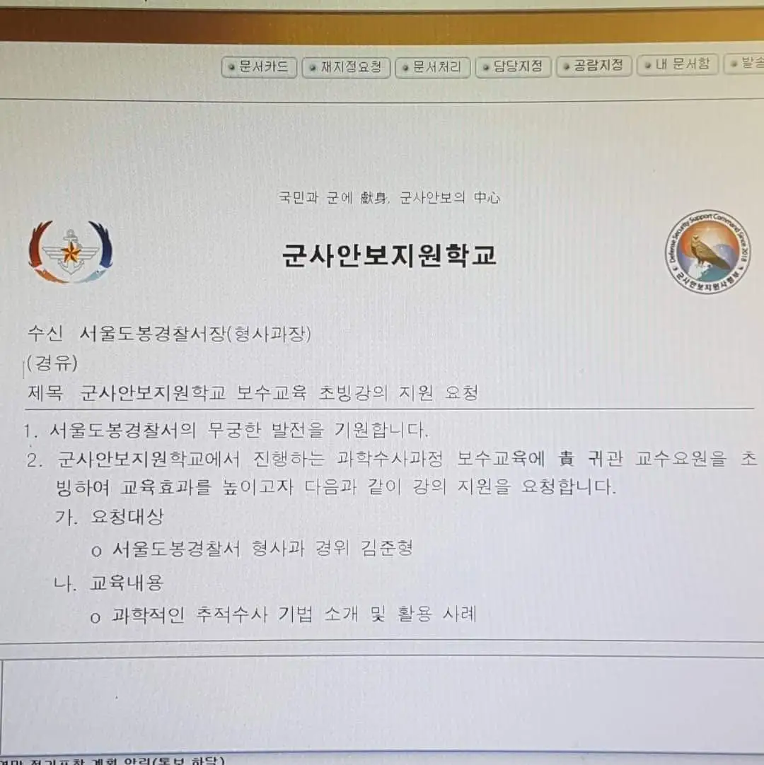 군사안보지원학교에 '경찰 추적수사기법'을 주제로 출강을 다녀왔습니다.