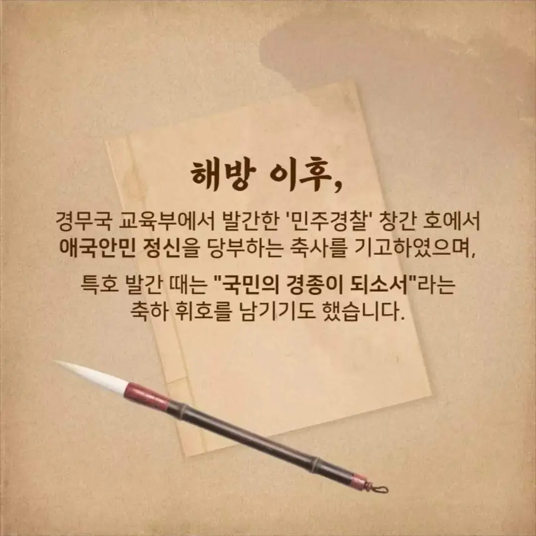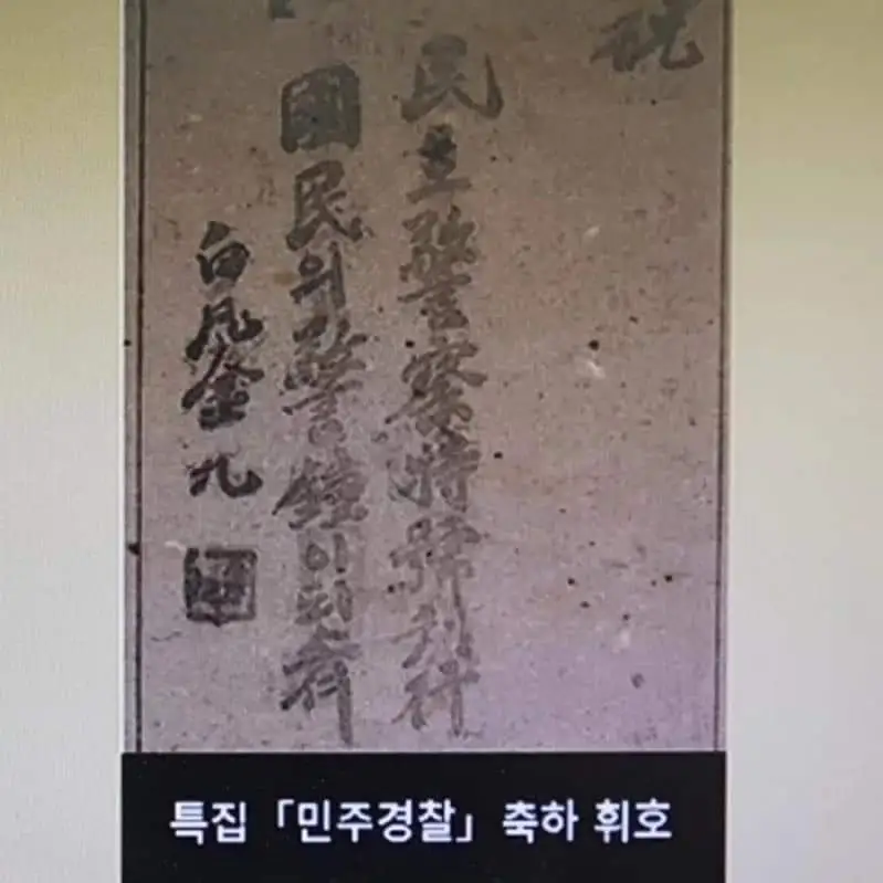'1947년 '민주경찰'지 창간 및 특호를 출간하며, 경찰에 축사와 축하 휘호를 선물하다.'