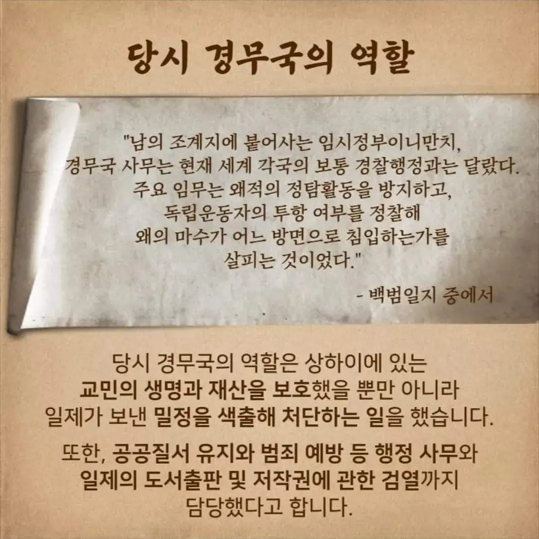 '1919년 백범 김구 선생 초대 경무국장이 되다. 그는 대한민국 1호 민주경찰이었다.'