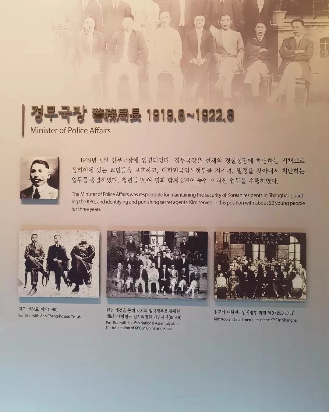김구 선생은 초대 경무국장으로서 임시정부 경찰의 기틀을 확립하였습니다. 우리역사상 최초 민주공화제였던 대한민국 임시정부의 경찰, 이로써 백범 김구 선생은 우리 역사상 1호 민주경찰이 되었습니다.