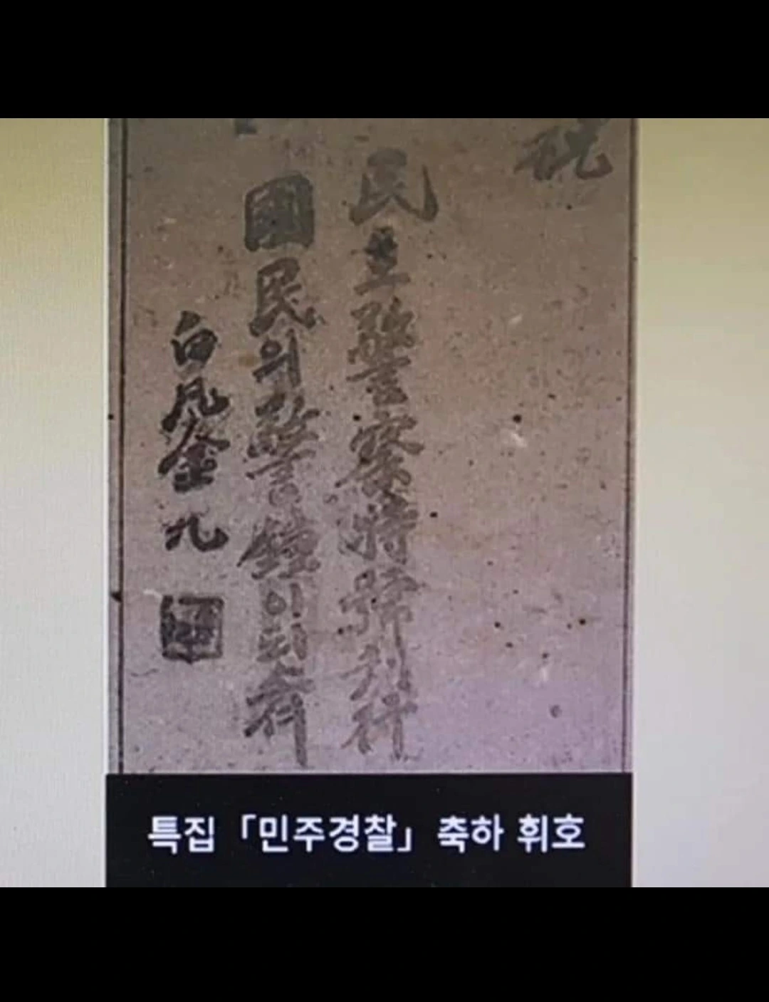 '1947년 '민주경찰'지 창간 및 특호를 출간하며, 경찰에 축사와 축하 휘호를 선물하다.'