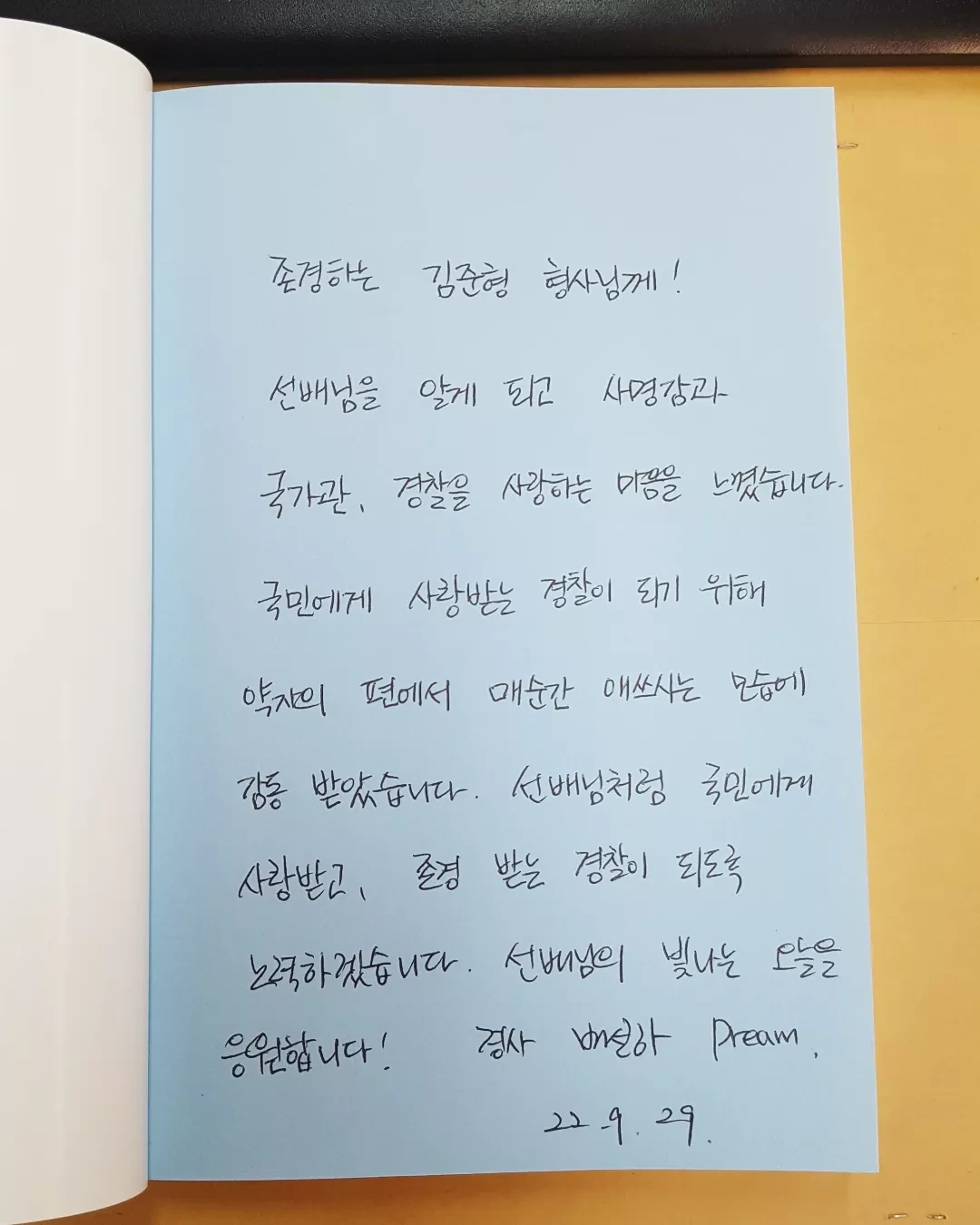 후배들이 힘들 때 찾을 수 있는 선배가 되기 위해, 근무하는 자신의 모습을 보며 경찰의 꿈을 키울 수 있도록 동기를 부여해주는 경찰관이 되기 위해 집필한 책이기도 합니다.