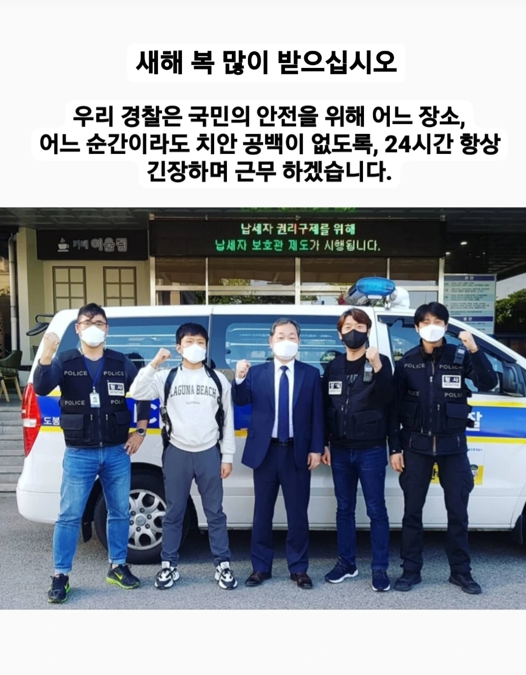 우리 경찰은 국민의 안전을 위해 어느 장소, 어느 순간이라도 치안 공백이 없도록, 24시간 항상 긴장하며 근무 중입니다. 이것이 국민들이 우리 경찰을 믿고 응원해주시는 이유라 생각합니다.