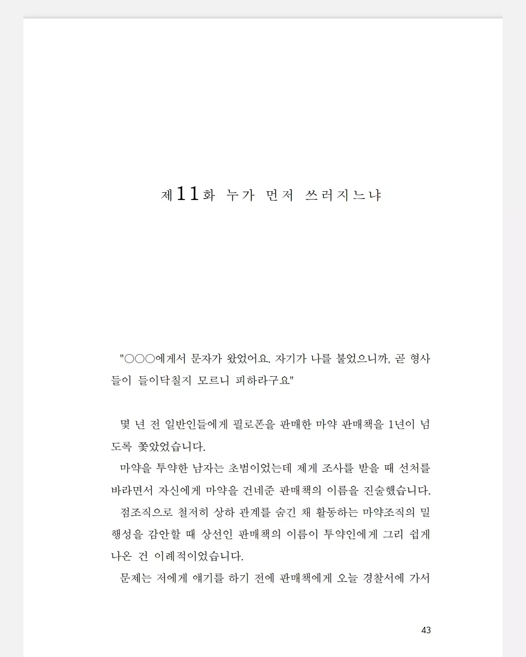 문제는 저에게 얘기를 하기 전에 판매책에게 오늘 경찰서에 가서 다 불테니 피하라고 먼저 알려주었다는 데 있었습니다.