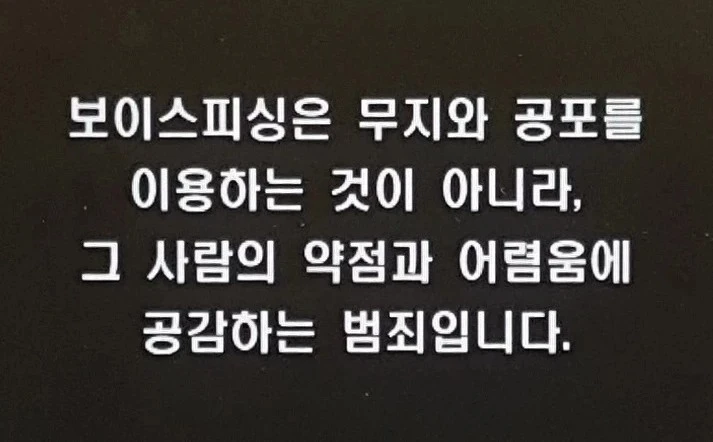 보이스피싱은 사람의 무지와 공포를 이용하는게 아니라, 그 사람의 약점과 어려움에 공감하는 지능범죄입니다. 그래서 법조인과 고지식층도 피해를 당하고 있습니다. 피해를 보신 분은 절대 자신을 자책하지 않으셔도 됩니다. 보이스피싱 예방이 최선입니다. 이점만 유의해 주십시오!!!