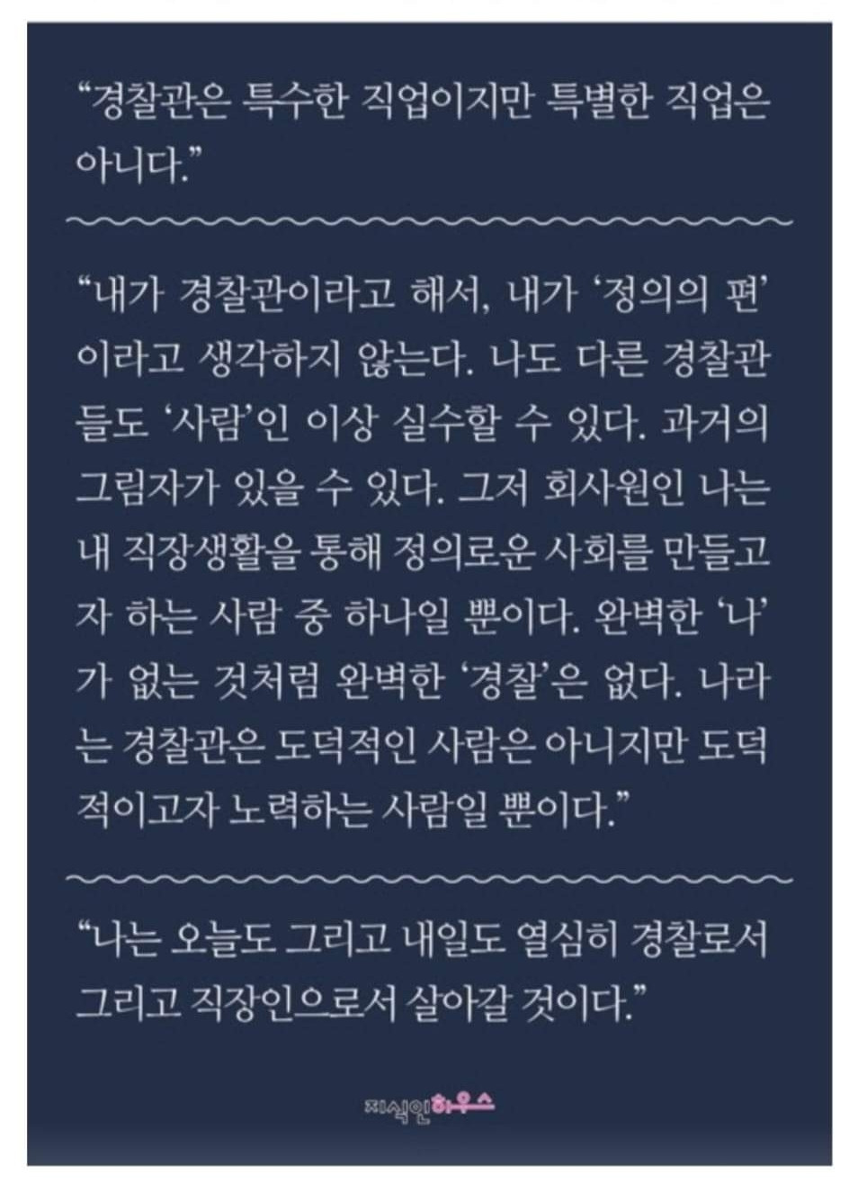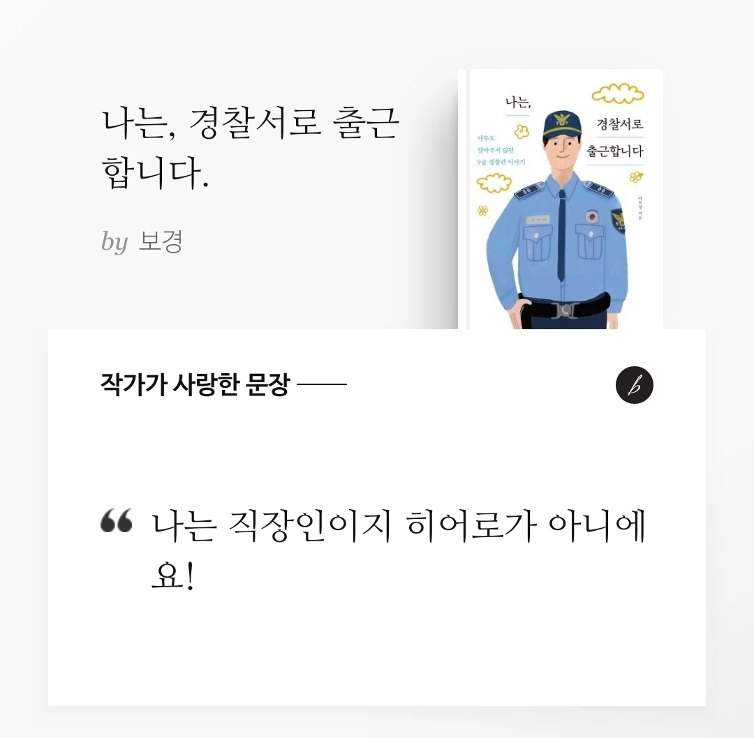 저는 경찰이라는 회사에 근무하는 직장인입니다. 사회의 구성원이자 가족의 구성원입니다. 저는 여러분과 같이 생존(?)과 자아실현을 위하여 직장을 다니고 있는 직장인입니다. 가끔은 회사에