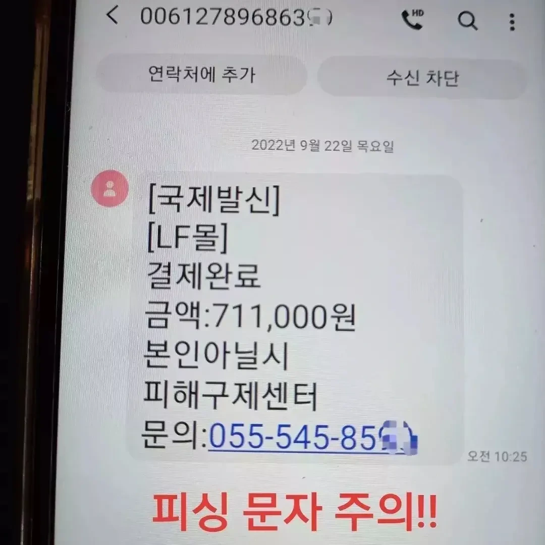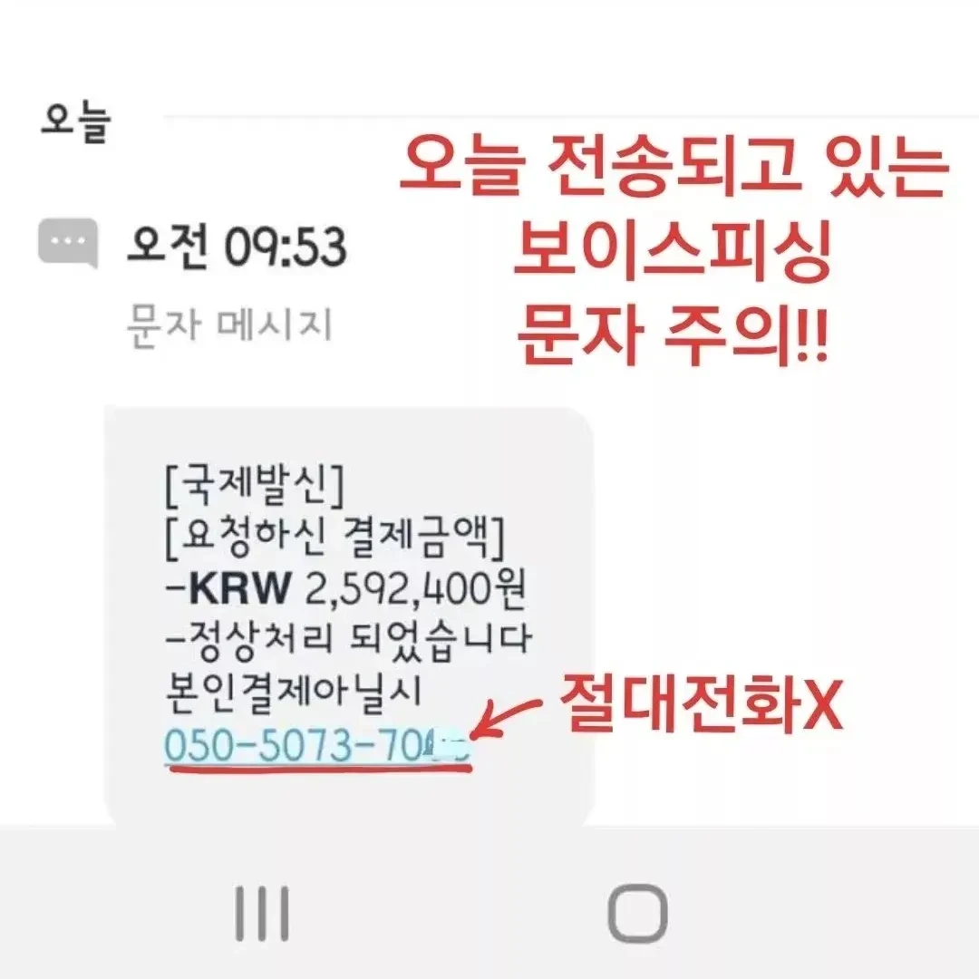 고가의 물건이 카드로 결제되었다는 피싱 문자메시지를 전송하는 방법으로 시작하는 보이스피싱 범죄 수법입니다. 그리고 최근 택배 관련 피싱 문자도 그 수법이 이와 비슷하게 전개됨에 각별한 주의가 필요합니다.