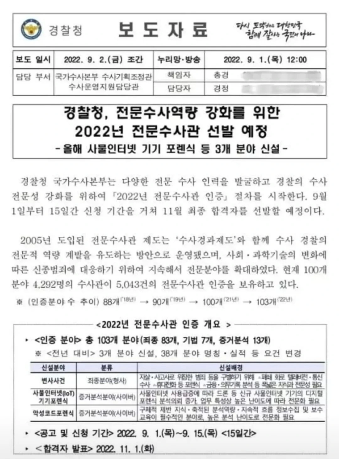 #국가수사본부 #전문분야 #선발 #전문수사관