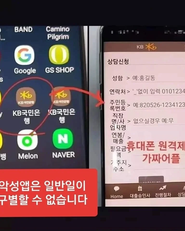 - 상대방이 문자나 카톡으로 보내 당신의 휴대폰에 설치하라는 어플을 절대 설치하시면 안 됩니다. 경찰 개발 '시티즌코난' 앱은 이 범죄를 효과적으로 예방할 수 있습니다.
