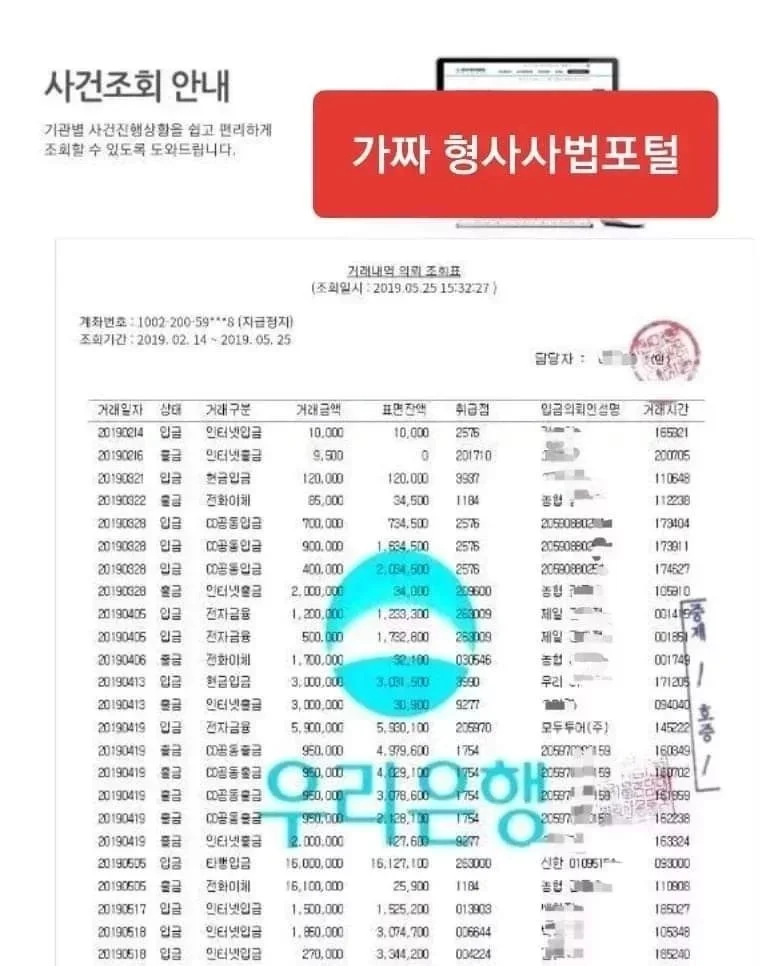 검찰청 '형사사법포털' 사이트에서 자신의 이름이 피의자로 올라가 있는 □□검찰청 '2021형제12345호' 사건 내용을 눈으로 확인한 피해자는, 이때부터 극도의 두려움을 느끼게 되고, 당황하게 되어 이성적인 판단을 못 하게 되며 수사 협조라는 명목하에 그들이 시키는데로 귀신에 홀린 듯이 움직이게 됩니다.