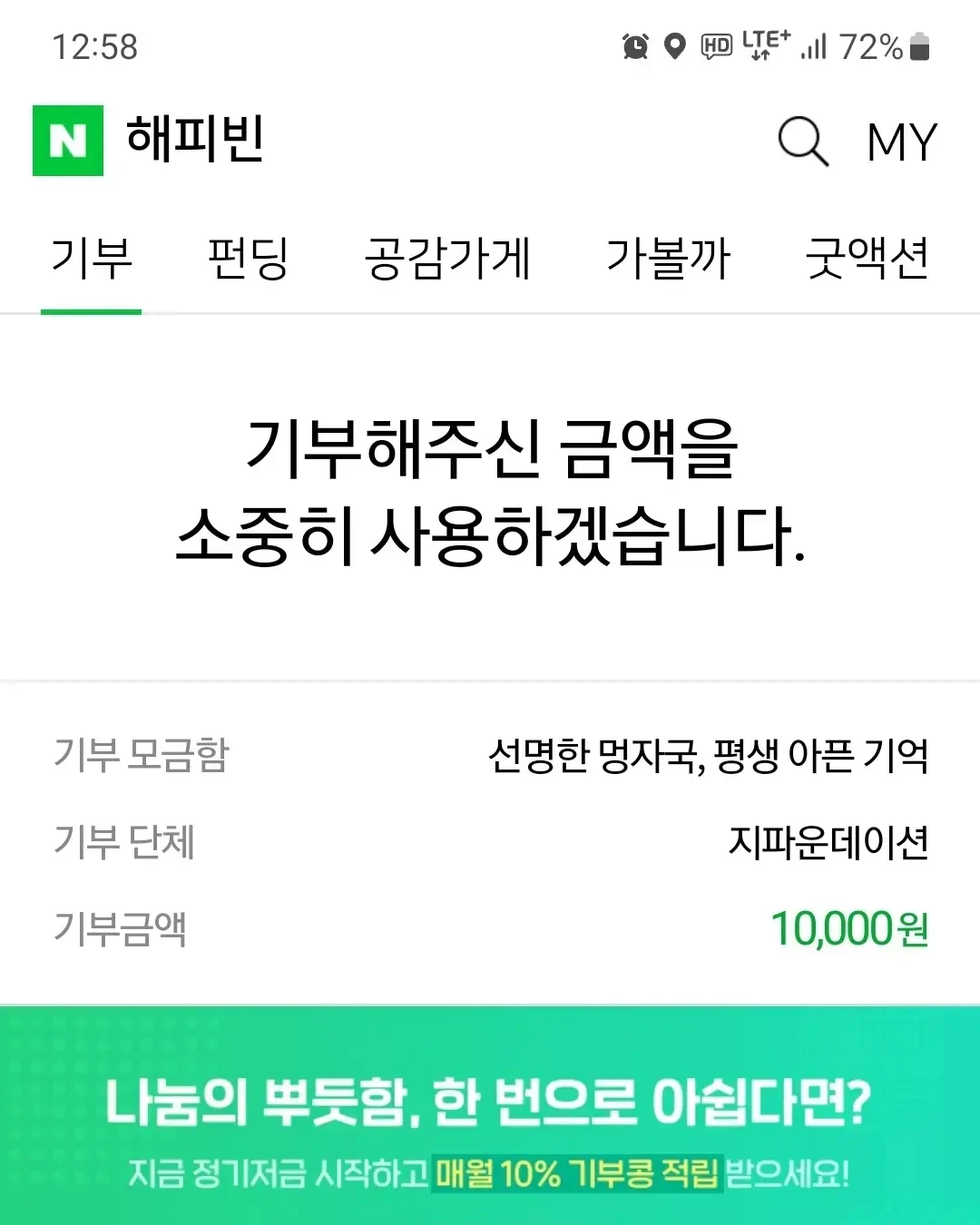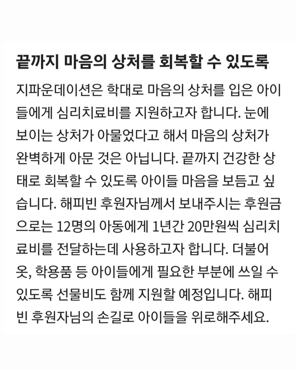 큰 금액은 아니지만, 아동학대 피해 어린이들을 위해 후원했습니다.
