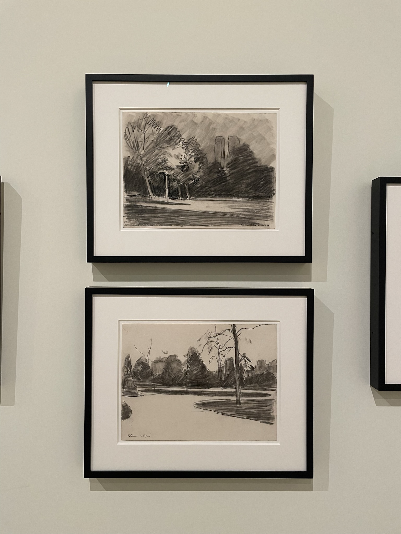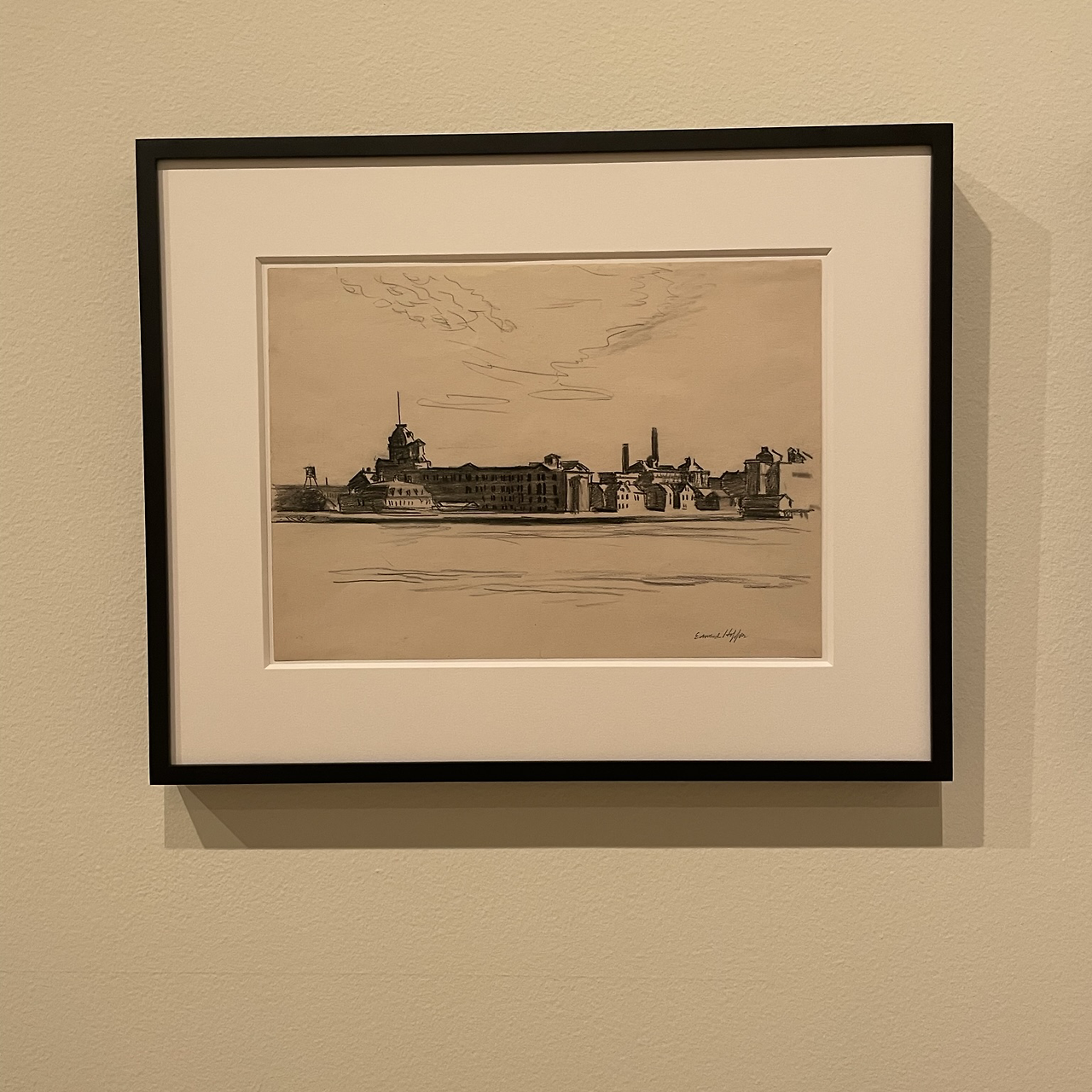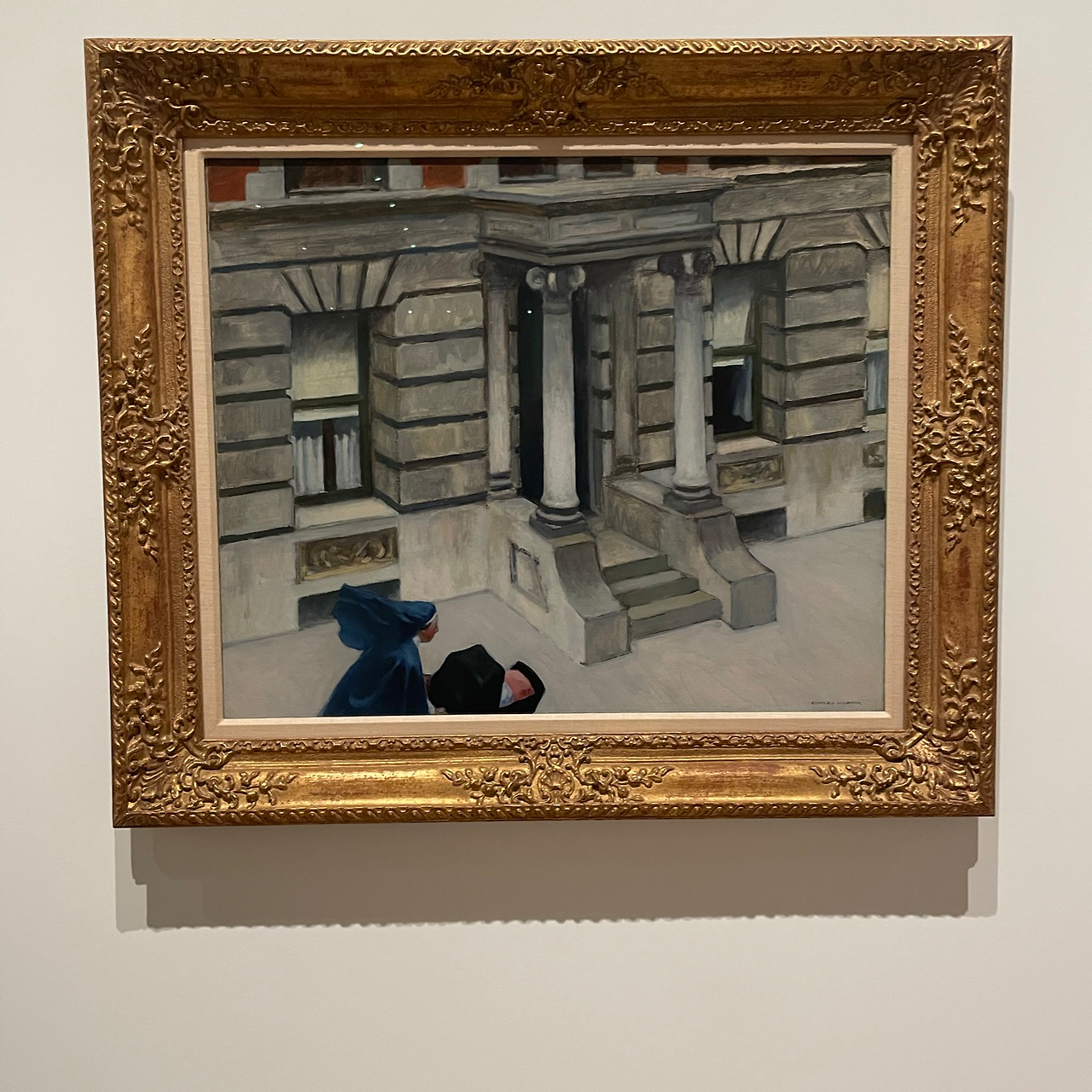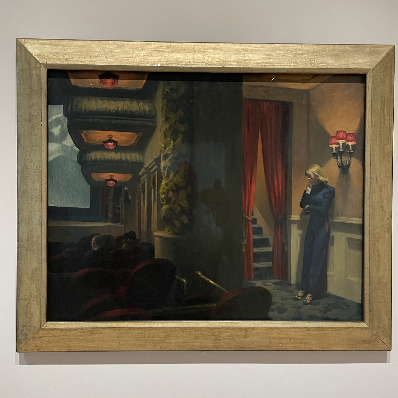 이미 깜깜해진 첼시에서 휘트니를 찾으려면 가장 밝은 빛이 보이는 곳을 찾으면 된다. 주머니에서 손 꺼내기도 힘든 추위에 불빛을 보고 휘트니에 도착하니까 네네가 로고를 보고 놀란다. “여기였어?” 디자인 수업에서 특이한 로고로 배운 곳이라고 했다. 나는 휘트니 로고는 몰랐지만 도네이션 티켓 날은 기가 막히게 맞추지. 친절한 직원에게 도네이션 입장이라는 설명을 듣자 막내는 “얼마 정도 내야하나요?”라고 물었고 직원은 매뉴얼에 있을 것 같은 대답으로 “얼마라고 말하기 어렵고 원하는 만큼 내면 된다.”라고 웃으며 말했다. pay yhat you wish에 맞게 우리는 얼마였는지 기억이 안나는 금액을 내고 엘리베이터를 타고 올라간다. 여기 테라스에서 보는 야경이 예쁘지만 오늘은 테라스가 닫혀있었다. 강풍 때문에 닫힐만했다. 어땠냐면 바람에 나무 뽑히는 줄 알았다. 어제 리즐리 서점에서 옆사람이 에드워드호퍼 책을 사가던데 지금 휘트니에서 바로 에드워드 호퍼 전시를 했다. (이 전시는 이후 2023년 상반기에 서울시립미술관에서도 했다.) 또 얼떨결에 호퍼 그림을 보게 되었다.