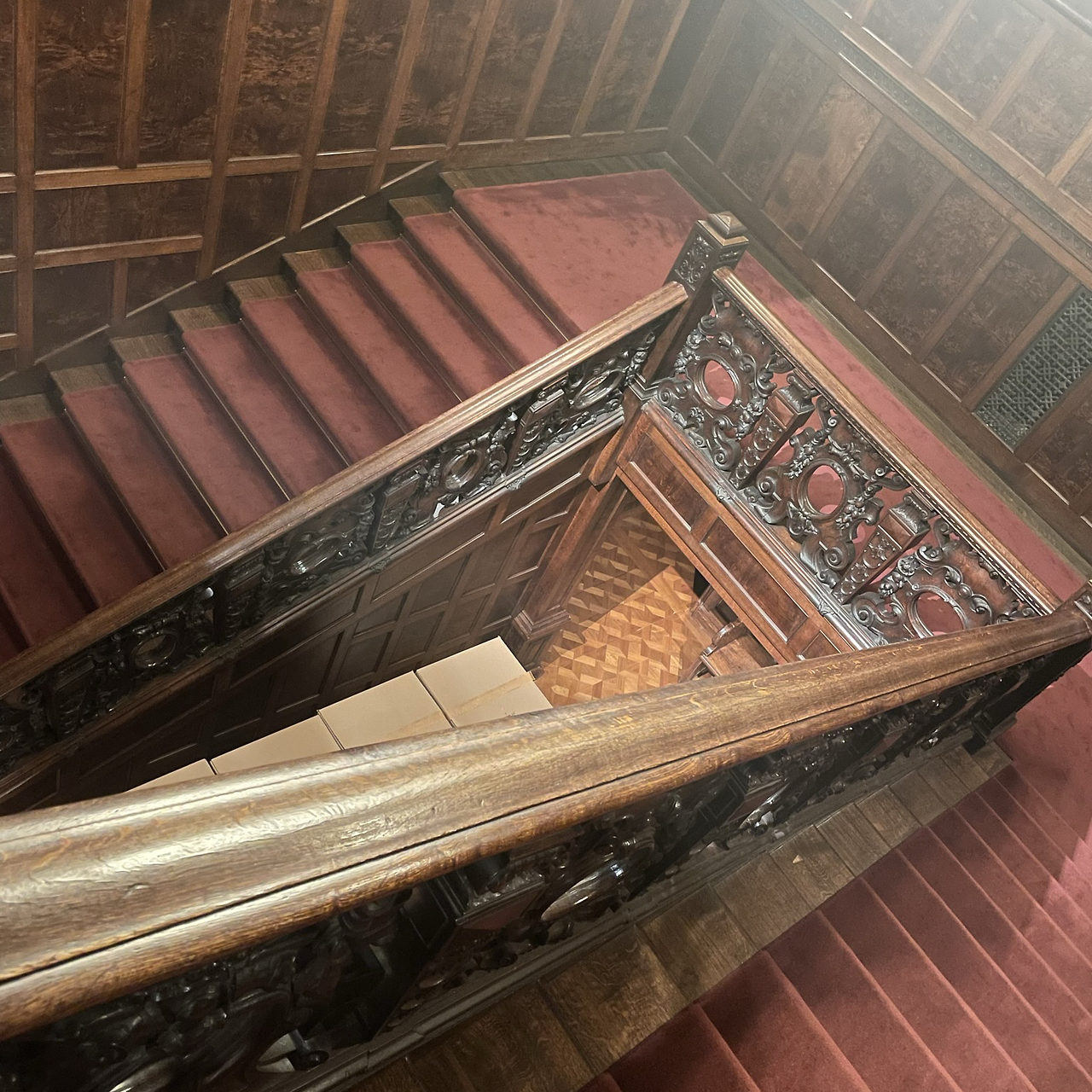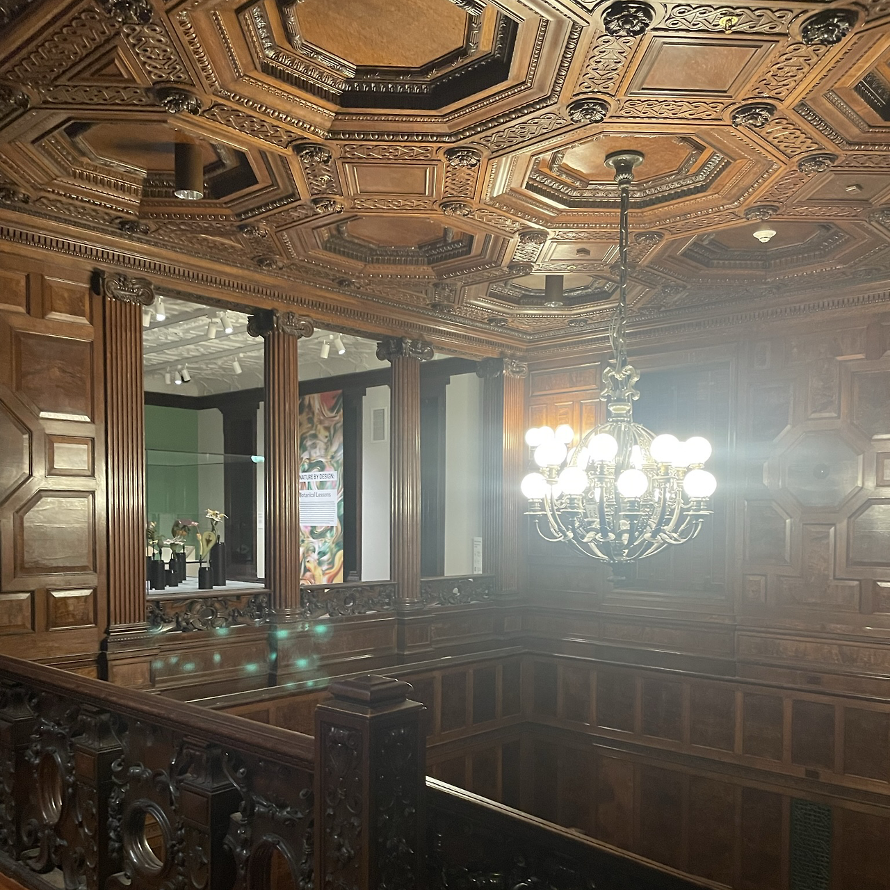 다시 문을 찾아 간 쿠퍼 휴이츠는 당시 처음으로 마스크를 꼭 써야 하는 곳이었다. 다른 곳은 권고 정도였는데 여기는 마스크를 나눠줬다. 그리고 여기서 일하는 경비원은 꼭 아이돌 경호원 같은 포스가 있다. 다른 데서는 모르면 길도 여쭤보고 그랬는데 왠지 그러면 안 될 것 같았다. -하지만 나올 때 보니 그냥 친절하신 분이었고 내 선입견이었다.- 삼엄해 보이는 1층을 지나 2층으로 올라가려고 했다. 여기는 원래 저택을 사무실로 쓰다가 미술관으로 개조해서 기부했다고 한다. 건물 분위기는 해리포터 보단 귀엽고 웬즈데이 또는 미스 페레그린이 생각나는 곳이다. 해리포터에선 이런 계단이 움직이던데 아쉽게도 계단은 고정되어 있다. 1층은 유물 전시 같았는데 2층에 가니 건물은 그대로인데 현대 디자인 같은 물건들이 많았다. 내가 갔을 때는 1900 Paris World's Fair에 관련된 전시였다. 다이어그램들이 많았고 자기 생각을 써서 붙이는 장소도 있었다.