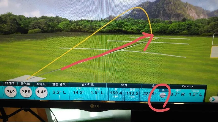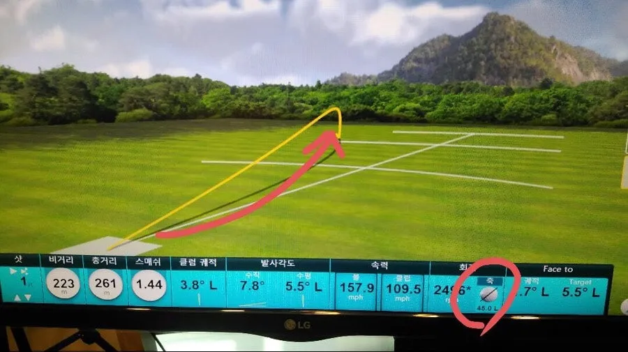 슬라이스 구질은 스핀축이 우측으로 기울어지는데요.