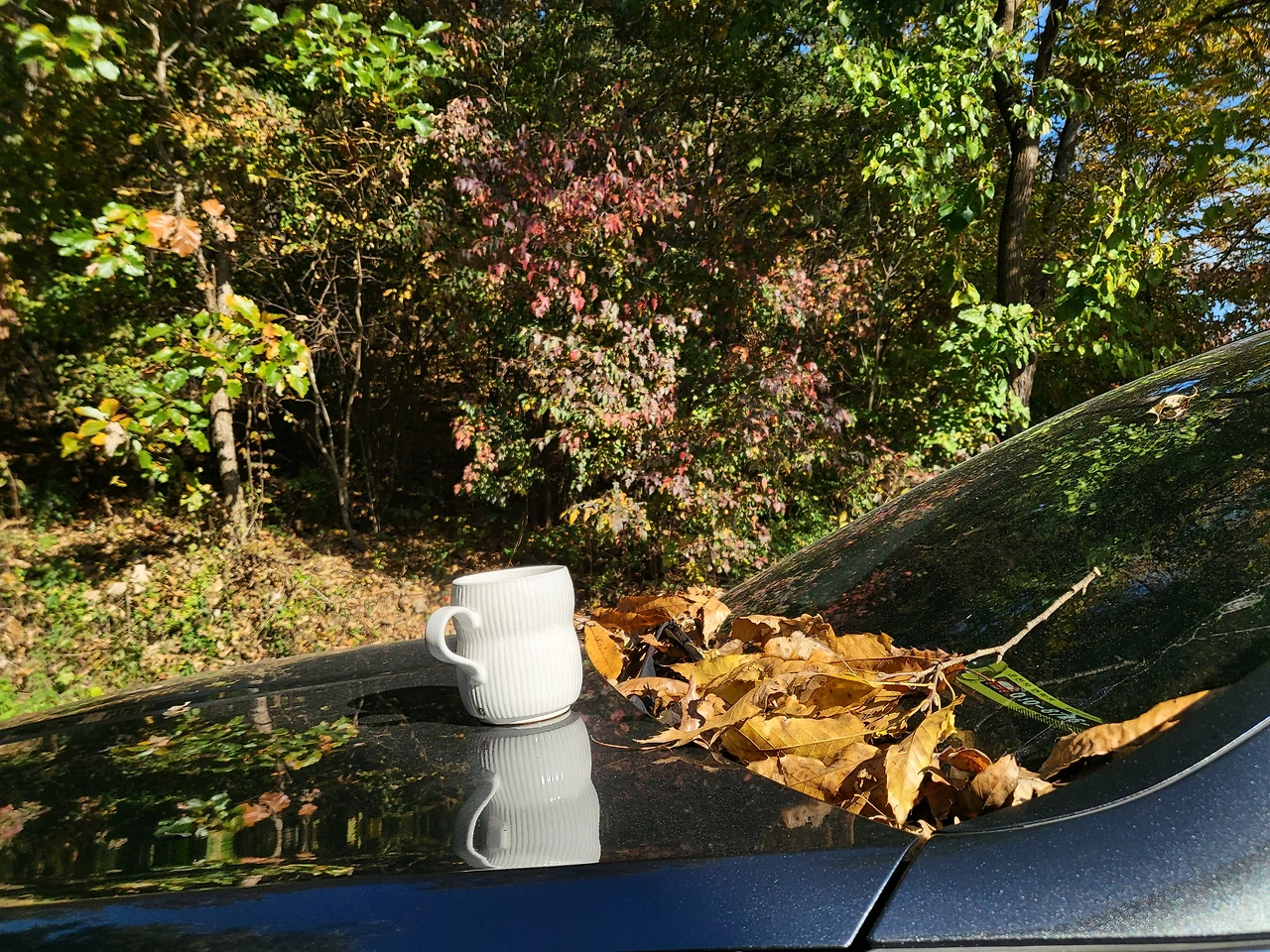 세워둔 차 앞유리에 가을이 소복이 쌓여 내렸다.
