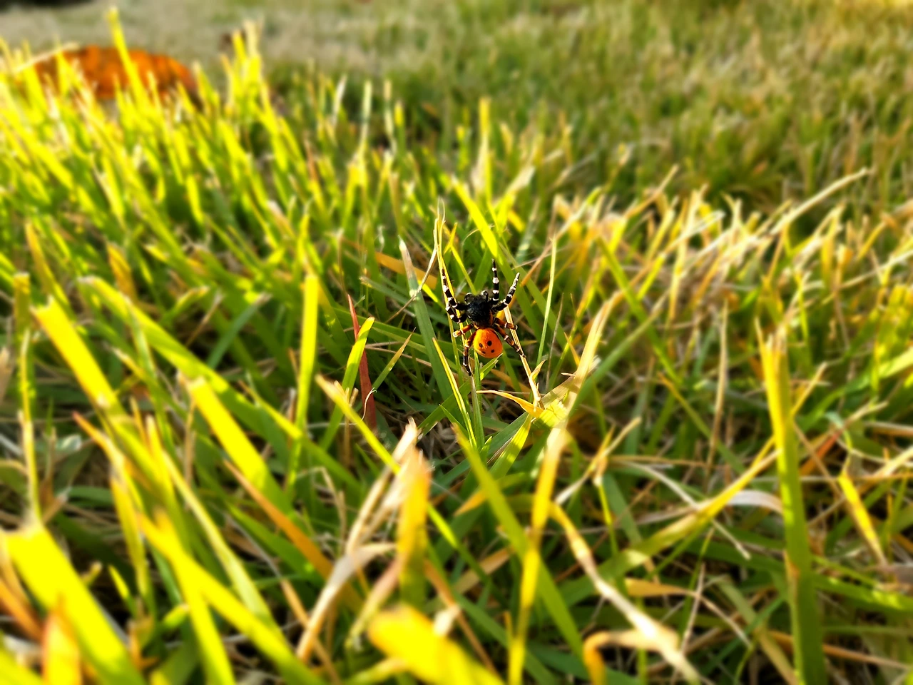 특히 주황색 꽁무니에 있는 4개의 ⚫️ 검은 점박이랑 다리에 있는 흰색과 검은색의 무늬가 아주 선명하네