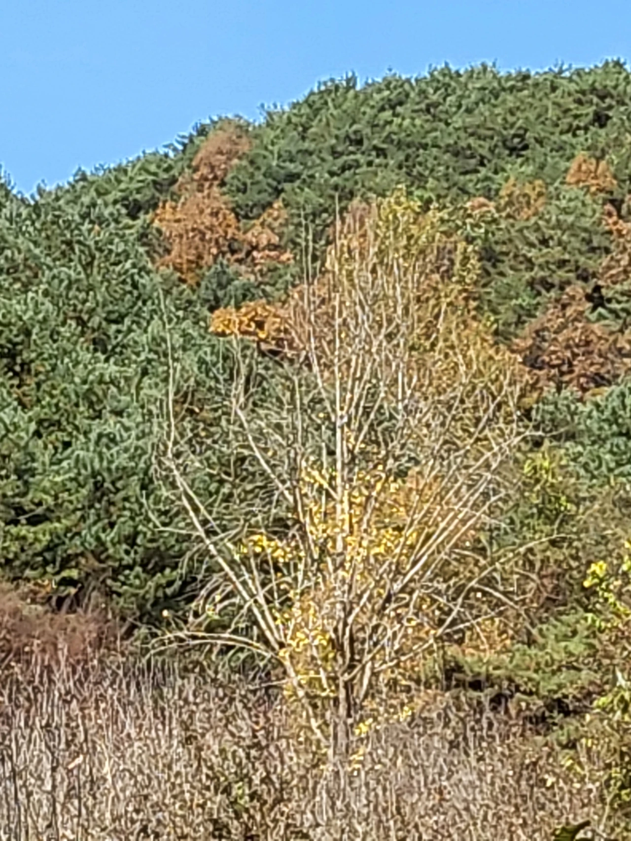 일찌감치 이파리를 떨구어낸 은행나무는 민가지만 살랑거리고
